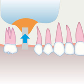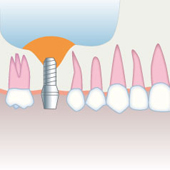 移植した骨が歯槽骨と同化し、十分な高さ・幅が増生されたら通常のインプラント治療に取りかかります。歯槽骨にとってインプラントは、天然歯の歯根と同じ様な役割を果たし、歯槽骨内に適正な機能圧を加えるので、 歯槽骨の吸収を抑える効果も持っているのです。
